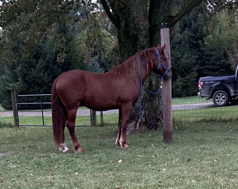 Paris has been a joy to be around. She is a kind mare that acclimates to every situation I have thrown at her. Paris loves attention, loves kids and moves beautifully.